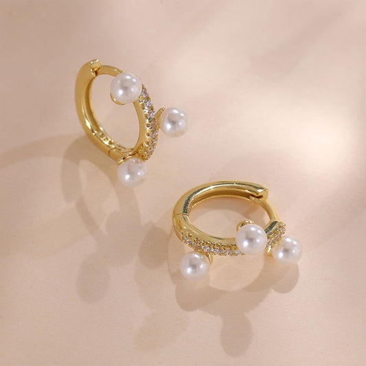 Trio Pearl Huggies Earring