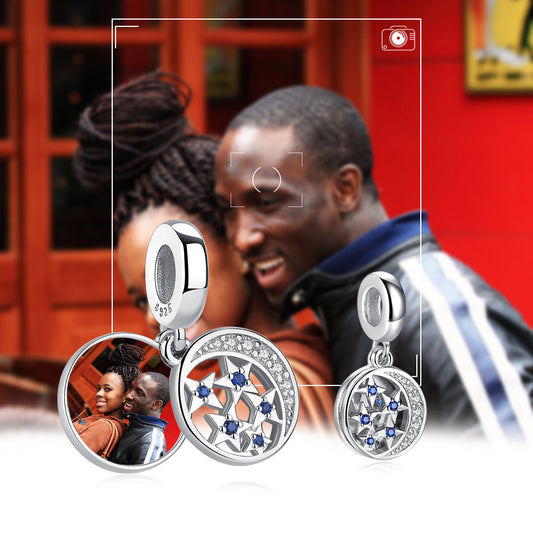 925 Sterling Silver Moon&Star Cutom Photo Bead