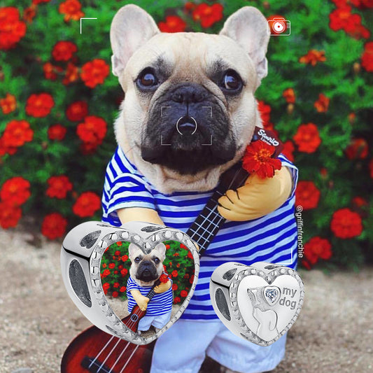 925 Sterling Silver Cute Cat Heart Custom Photo Bead