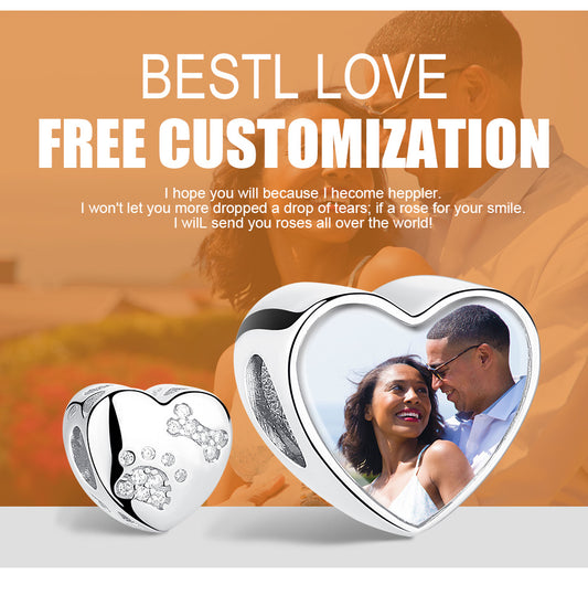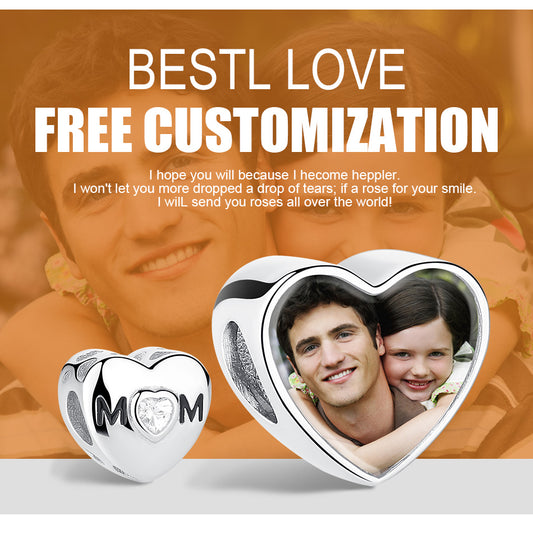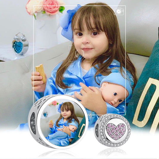 925 Sterling Silver Crystal Love Custom Photo Bead