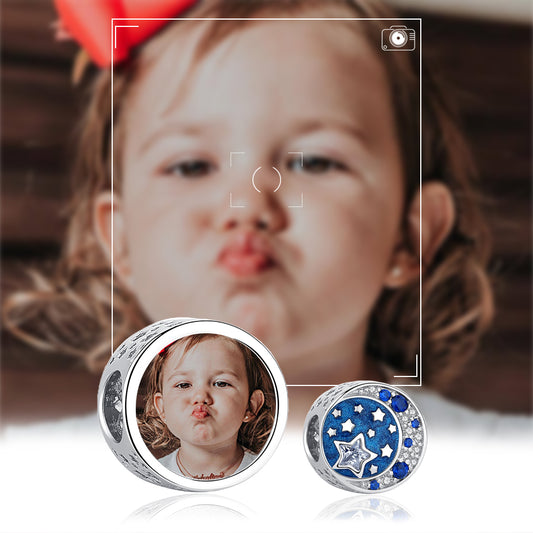 925 Sterling Silver Moon&Star Cutom Photo Bead